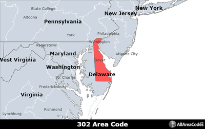 The area code 302 was among the 86 original codes established in the North American Numbering Plan (NANP) to serve the state of Delaware in the United States. It is not a toll-free number, and charges may be incurred when making local or international calls.